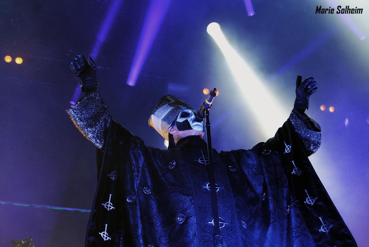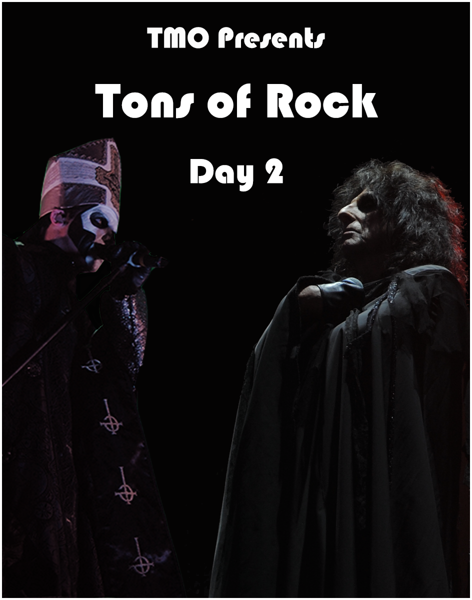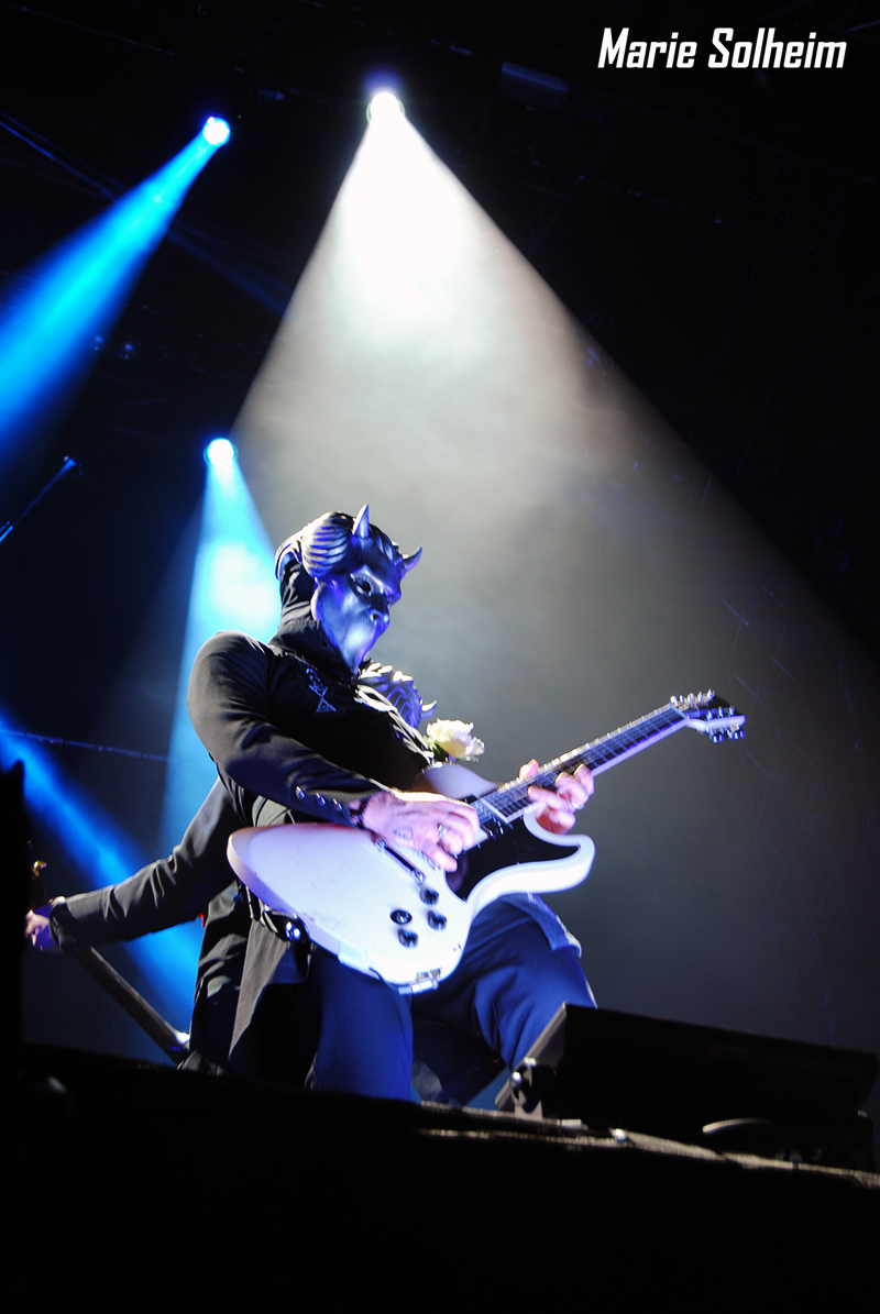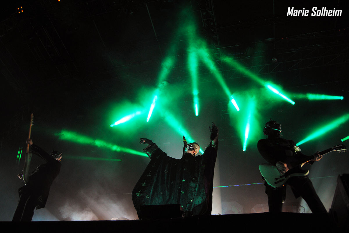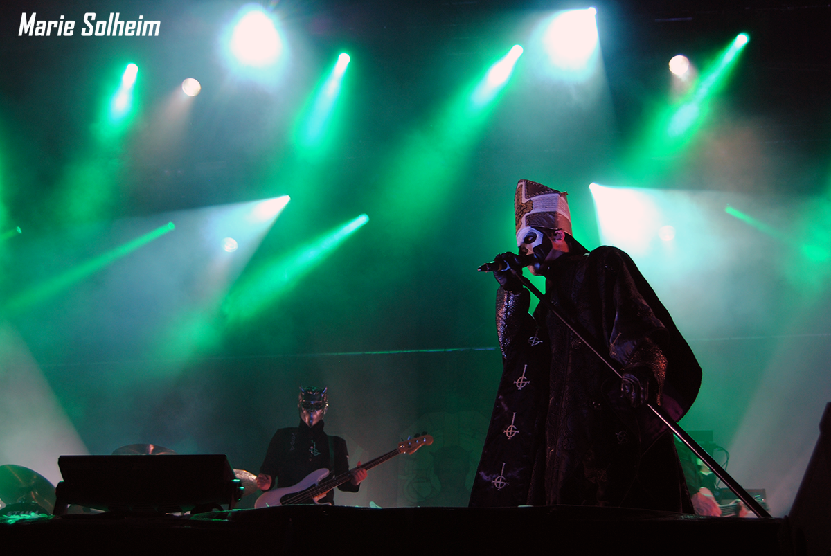Stumbling back down toward the main stage, the huge crowd from Alice Cooper has grown even larger. Cooper himself left an hour ago, and this horde are here to see the Swedish ghouls in Ghost make their triumphant return to Tons of Rock. Since they last played here in 2014, they’ve released the well-received Meliora, and their already considerable following seems to have grown exponentially. Not satisfied until they reap complete world domination, Papa Emeritus and his nameless ghouls have brought another bag of seductively evil tricks to Halden. Once again appearing from the shadows to the unmistakable “Masked Ball” from Eyes Wide Shut, Papa greets the crowd to wild applause, wasting little time before launching into “Spirit” off the new album. Like Alice Cooper, Ghost are also masterful entertainers, with even the Ghouls taking great measures to pose and move around the elaborate stage.