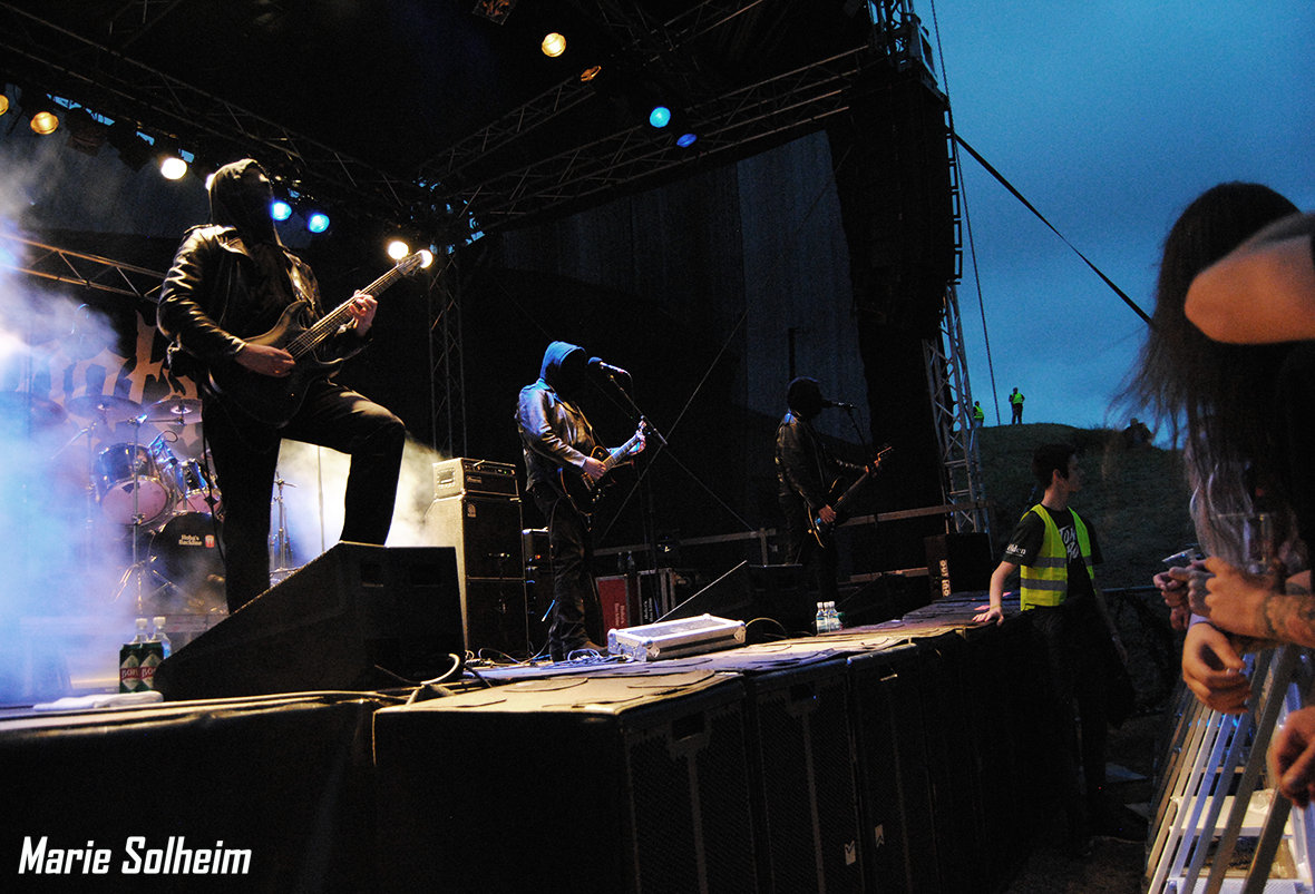 After what feels like a very long climb for sore feet, we reach the summit that’s been dubbed the Huth Stage. The evening view is spectacular, and it feels like we are on top of the world as we and a handful of other diehards wait for the Polish cult Mgła to shred us to pieces. So far the festival has been somewhat lacking in the black metal department, and the masked foursome promise to be a masterful remedy. Touring on the back of their latest masterpiece Exercises in Futility, the group makes a subdued entrance to the excited crowd. What follows is a furious display of icy riffing done without any unnecessary bells and whistles, with highlights taken from Exercises and the even greater With Hearts Toward None. A chill wind tears through the damp summer night, and Mgła prove once more why they are one of the premier black metal bands of the last five years. On the small stage on top of the mountain, the sound is rougher than it ought to be tonight, but judging from the reactions all around us, this is a minor nitpick.
