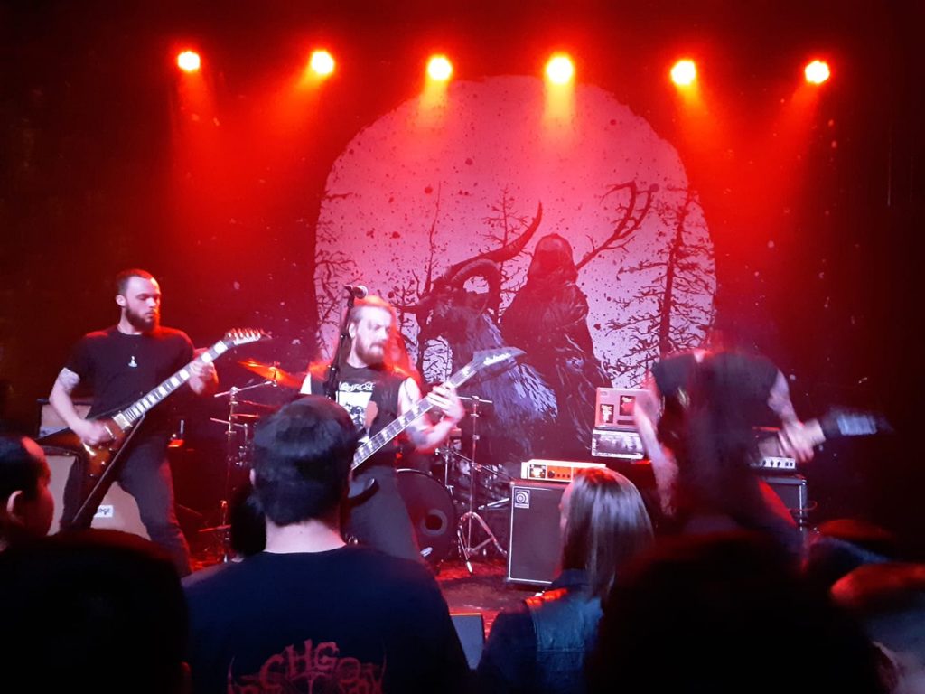 Their stage show is a chaos ritual that hearkens back to old school black metal with a modern and more creative spin on it. They also have lyrics in Latin that date back to the events of the 10th century Crusades as the audience chants “DEUS VOLT” along with them. Every time I see them, they have added an extra element to the chaos ritual to make it a more immersive experience with the latest being a chalice of blood that Andrew drinks from to spray the front few rows. These guys always put on a killer show and this was no exception with the crowd being super into it, the banners of chaos flying and the gold hands on pedestals, which come complete with a black candle that actually burns on stage. If you have not heard of these guys by now, do yourself a favor and get their album and make it a point to go see them live when they to a town near you.