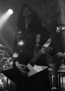 The Infernal Sea took to the stage wearing cowls and strange masks. If that wasn’t disturbing enough, they were accompanied by four figures in the same garb, but who stood still throughout, each wielding a lantern. To say there was scepticism about what was to follow would be an understatement. However, The Infernal Sea were another surprise package. The first few tracks were feral old school Black Metal in the vein of Mayhem, etc; all blasting and very little variation, with harsh screeching and some deep growls. However, they soon started to mix things up a bit with some marvellous groovy riffs that brought to mind Cathedral, sometimes even Hawkwind (see “Angels Of Death” and, to a lesser extent, “Rocky Paths”) and a swirling guitar sound like Love-era The Cult, in particular “The Phoenix”. If this wasn’t enough of a (pleasant) surprise, the introduction of a few funky bass lines certainly was. The band were at their most enjoyable when they introduced these groovy, funky and occasionally melodic sections. They may stand out from the crowd if they focus a little more on these parts of their sound, which they do so well, with slightly less emphasis on the violence and speed that we’ve heard many times before.
