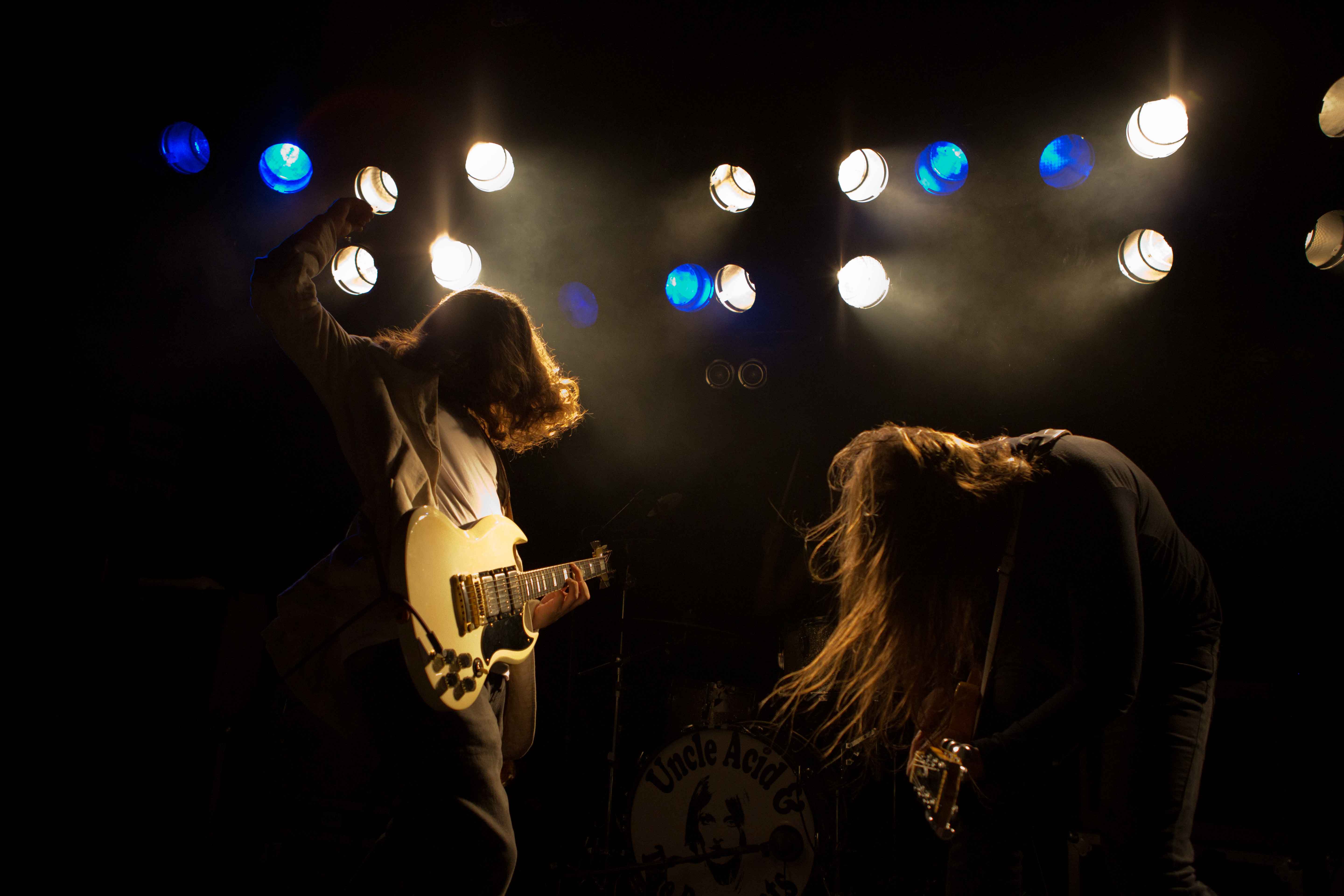 Last year Oslo had the honor of hosting the psychedelic horror-show of Uncle Acid & The Deadbeats twice. At the mid-sized Parkteateret they nearly brought the house down with their unmatched synthesis of creepy crawling riffs and rock and roll swagger. A few months later they returned in grand scale, warming up for the mighty Black Sabbath on their European tour. As a young band, playing huge arenas must have been a surreal experience, but also brought the ferocious foursome out into the mainstream. When they return to Norway’s capital on this chilly march evening, it is to a sold-out venue, which means 400 hungry fans have come to give the Brits a hearty welcome.