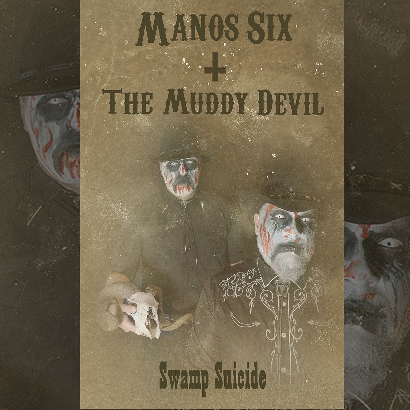 Manos Six + the muddy devil is my personal project along with Stamos Abatis. The two of us have been playing music together since 1999 in various projects. Our current main band is: Skull& dawn:, a 5-member Americana, dark-country band. Apart from this band, I had the need to express a more avant-garde country sound, blended with black metal elements and a more theatrical aesthetic, so I created this side project.