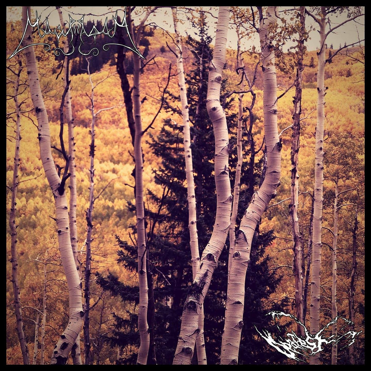 Two of my current favorite American atmospheric black metal bands, Deafest and Mavradoxa, have joined to release a thirty-two minute split, which—going by the cover art—is a celebration of autumn (and the rapidly dropping temperatures). The split showcases three Mavradoxa tracks, a neofolk intro and the “Burning Wings, Withered Leaves” duology (one of which is another woodsy neofolk track) alongside two Deafest tracks. Mavradoxa’s sound is classy and full bodied, with a surprisingly mature approach to their music, leaning towards the verdant Cascadian black metal scene, despite hailing near the Appalachian and Adirondack Mountains. Deafest brings the sharp and jagged sound of the Rocky Mountains, offering fleeting movements of lofty melody amid sweeping tremolo riffing. Fifteen hundred miles might separate Deafest from Mavradoxa, but their sounds fit together like they’ve been closely working with each other for years.